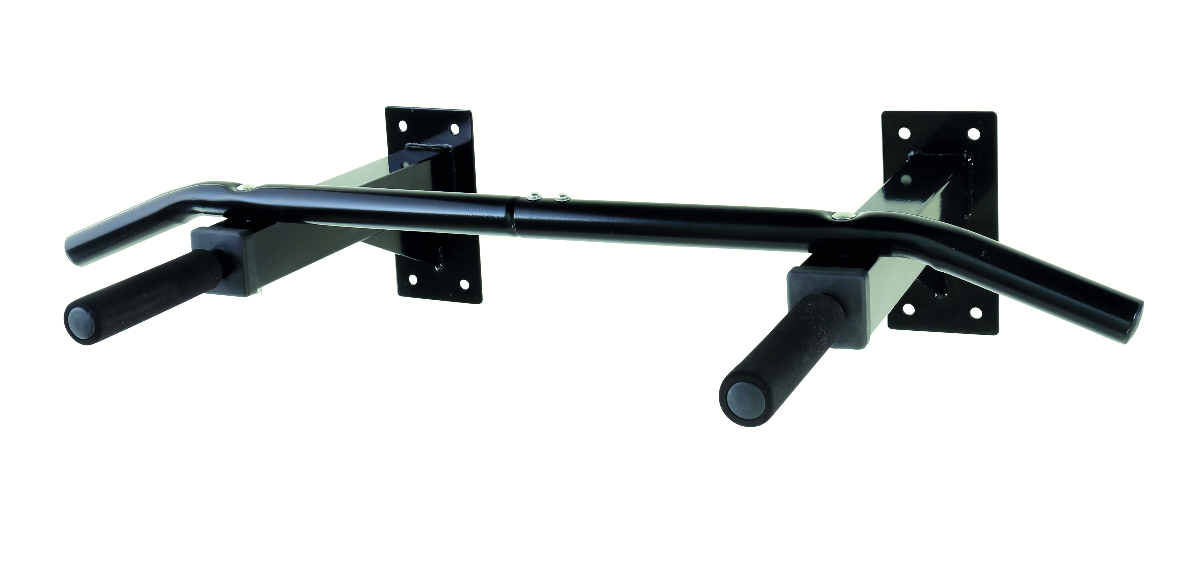 Idealer Trainingspartner für ein effektives Oberkörpertraining, leichte Montage, wenig Platzaufwand, einfache Handhabung, mehrere Griff-Möglichkeiten, Material: Stahl, Plastik und Schaumstoffüberzug (Griffe), Belastbarkeit: 120 kg, Länge der Griffe: 15 cm, Länge der Stange: 90 cm, Tiefe zur Wand: 51 cm, Maße der Platte zur Wandbefestigung: 20 x 10 cm, Maße gesamt: ca. 55 x 90 x 20 cm, Farbe:schwarz