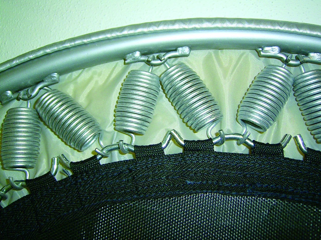 Sehr gut geeignet für therapeutische Zwecke bei Patienten mit akuten Gelenk- und Rückenbeschwerden - Gummikabel-Aufhängung - Sprungmatte: schwarz - Randbezug : silber - Höhe: 30 cm - 1 Jahr Garantie - ∅ 120 cm belastbar 10- 90 kg