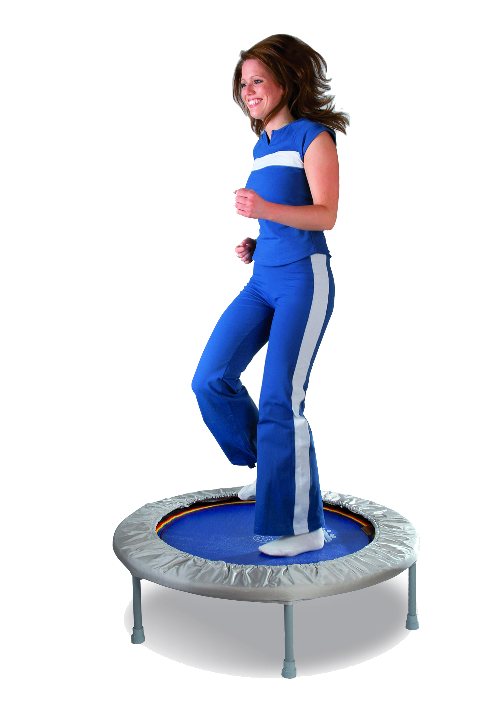Empfohlenes Körpergewicht 100 kg. Der Allrounder mit der hochelastischen weichen Spezialfederung. Angenehm rücken- und gelenkschonend. Daher das bevorzugte Gerät für Krankengymnastik und Rehabilitation, sowie für Ausdauer- und Lauftraining. ∅ 102 cm, Höhe 26 cm, 36 Federn, Randbezug silber, Gewicht ca.11 kg.