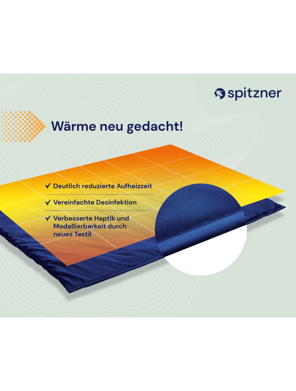 - Problemlos applizierbar und modellierbar Unkomplizierte Reinigung mit allen handelsüblichen alkoholfreien Desinfektionsmitteln Wirtschaftlichkeit: 2 Jahre Garantie auf die physikalische Funktion (Wärmespeicherkapazität)