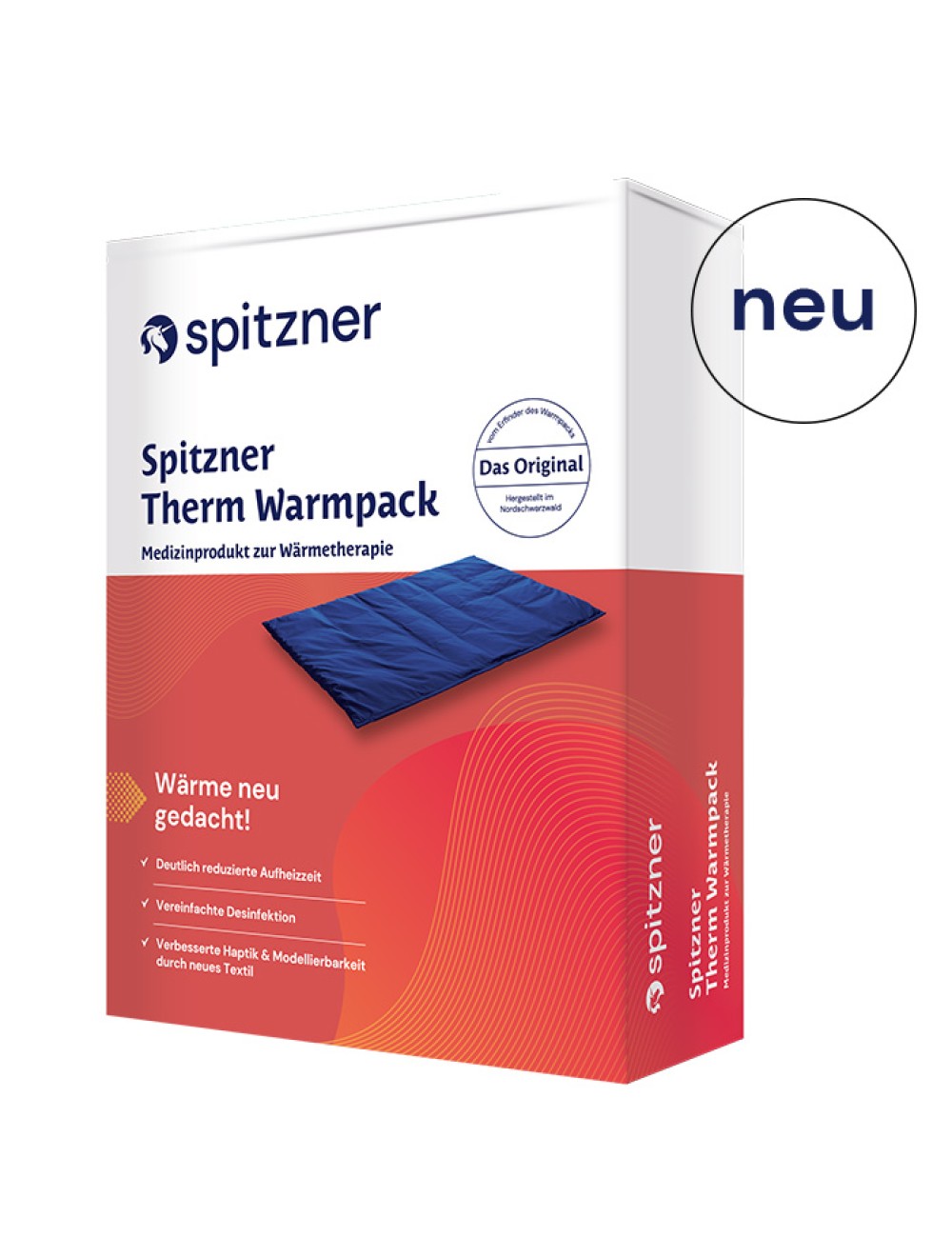 Innovation trifft auf Tradition. Der optimierte Therm Warmpack setzt neue Maßstäbe: • Deutlich reduzierte Aufheizzeit • Vereinfachte Desinfektion • Verbesserte Haptik und Modellierbarkeit durch neues Textil Indikation: Wärmetherapie bei subakuten und chronischen Zuständen des rheumatischen Formenkreises (entzündliche und degenerative Gelenk- und Wirbelsäulenerkrankungen, „Weichteilrheumatismus”) bei postakuten Zuständen nach Traumen am Bewegungsapparat zur Schmerzlinderung Gegenanzeigen: Akute Entzündungszustände, akute Zustände nach Traumen, Blutungen, Ödeme, makro- und mikroangiopathische Durchblutungsstörungen der Haut, Fieberzustände, Hautareale mit Sensibilitätsstörungen, großflächige Hautverletzungen und akute Hautkrankheiten. Prinzip: Mit innovativer PCM-Technologie
