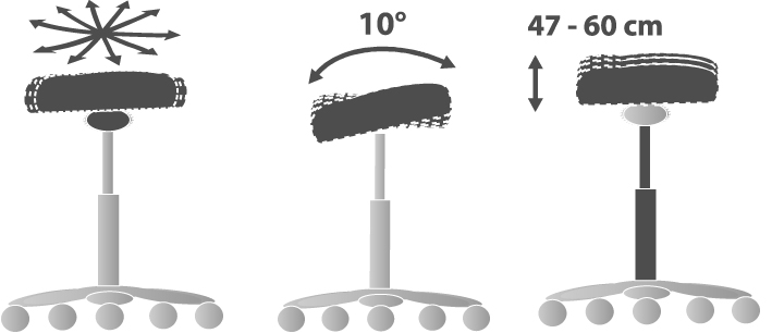 Die gepolsterte, runde Sitzfläche mit einem Durchmesser von 36 cm und einer Höhe von 5 cm sorgt für hohen Sitzkomfort auch bei längeren Anwendungen.